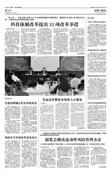 科技体制改革提出32项改革举措